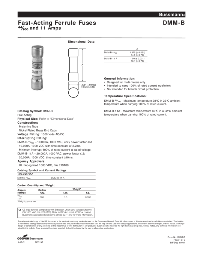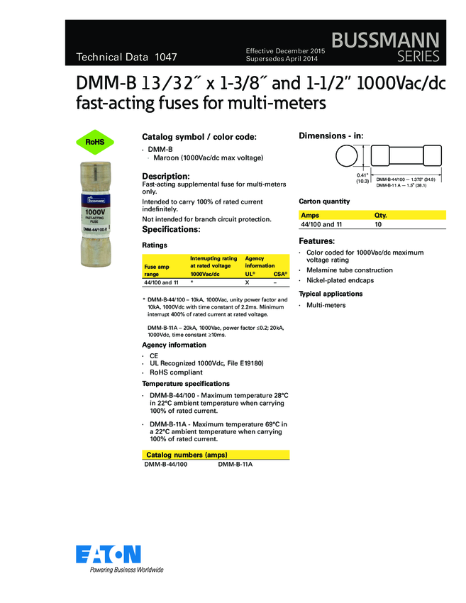 Fuse 0.44A 1000V Fast 2-Pin Cartridge Holder