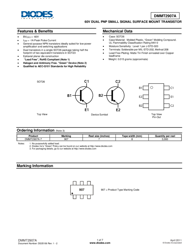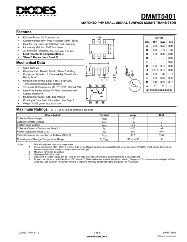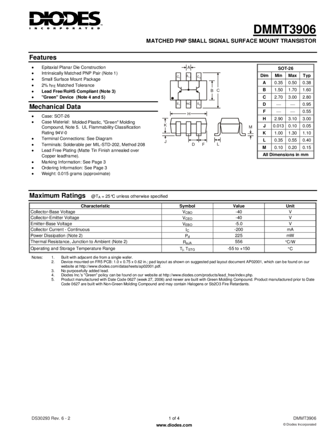 MATCHED PNP SMALL SIGNALSURFACE MOUNT TRANSISTOR