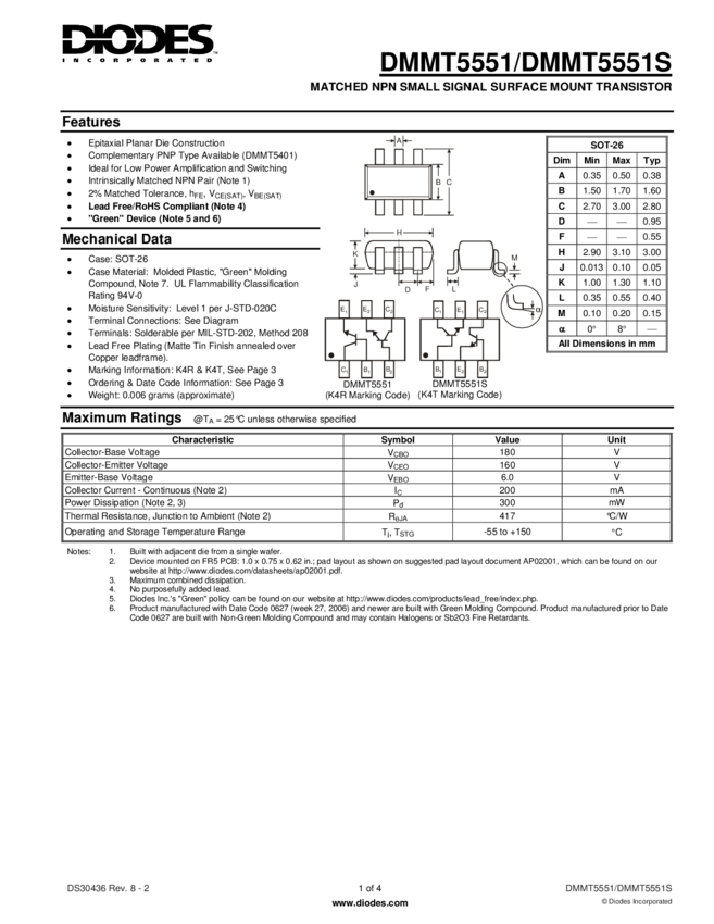 MATCHED NPN SMALL SIGNALSURFACE MOUNT TRANSISTOR