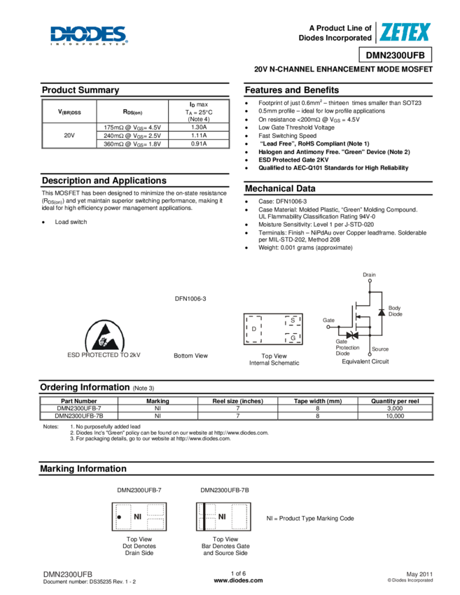 20V N-CHANNEL ENHANCEMENT MODE MOSFET IN SOT23