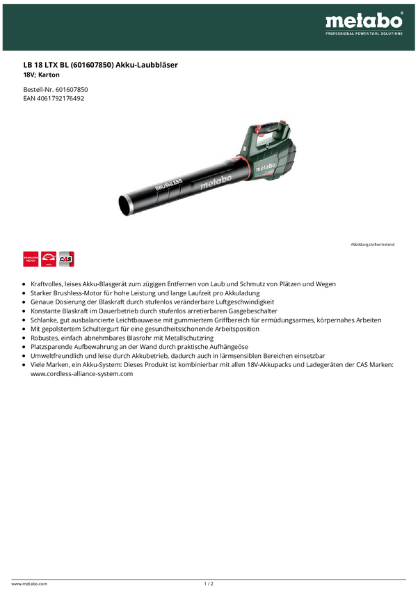 Metabo LB 18 LTX BL akumulatorowy 601607850 Dmuchawa do liści