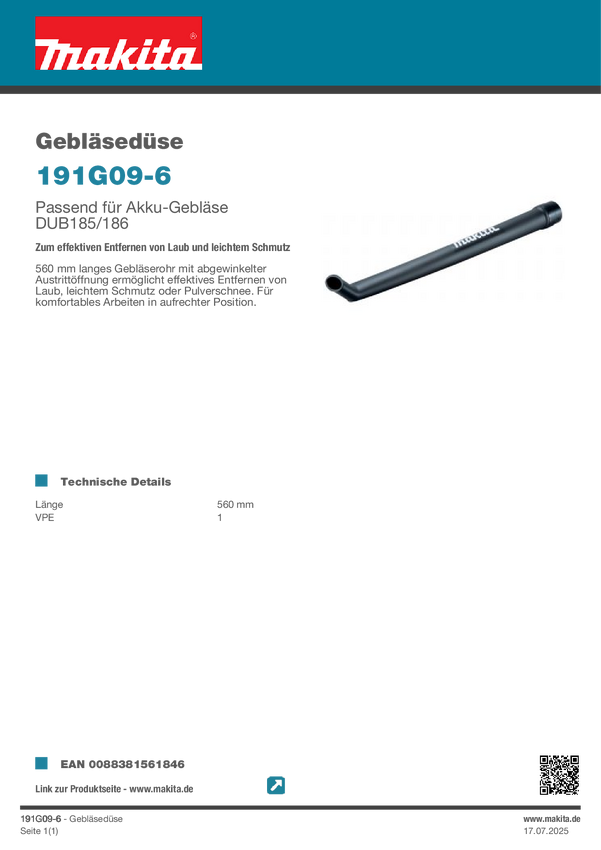 Makita 191G09-6 191G09-6 dysza dmuchawy