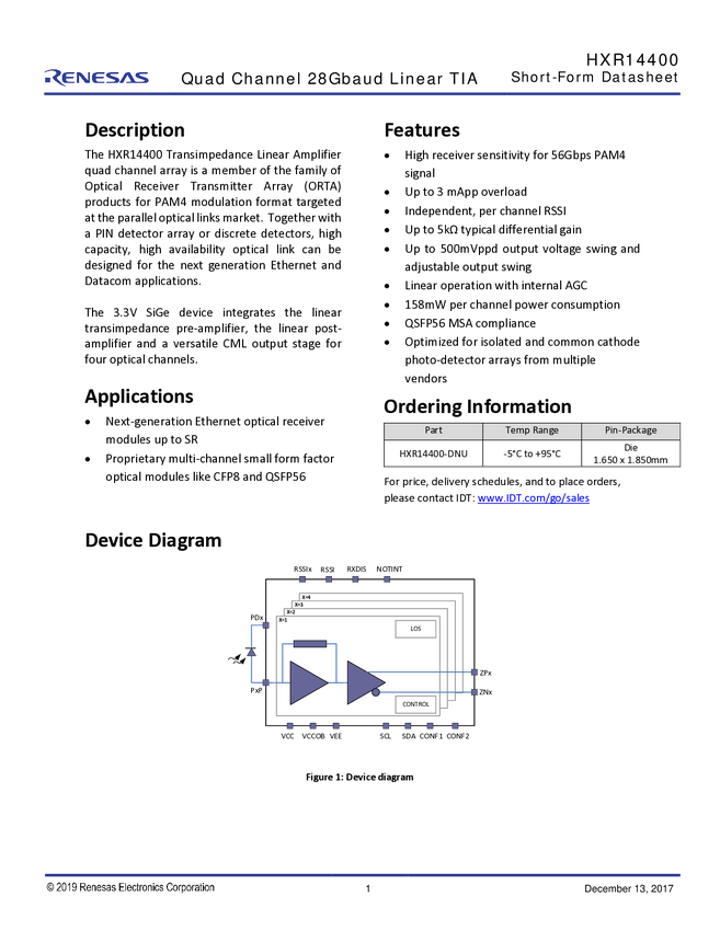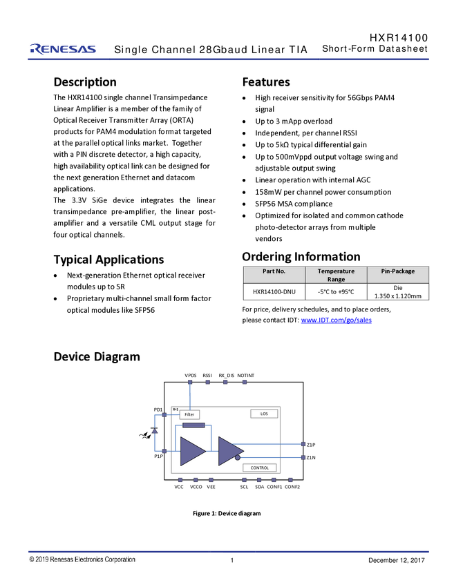 56Gb/s PAM4 CDR/Retimer with VCSEL Drivers, Uni-Di
