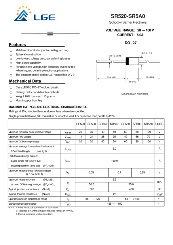 Dioda Schottky, 5A, 80V, DO201AD LGE