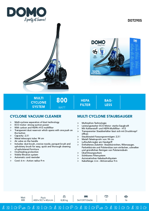 DOMO DO7286S Odkurzacz bezworkowy