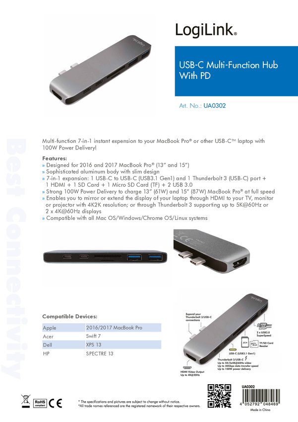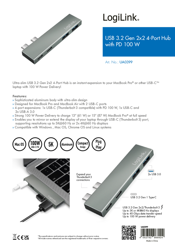 Stacja dokująca USB-C® LogiLink UA0399 zasilanie USB-C®