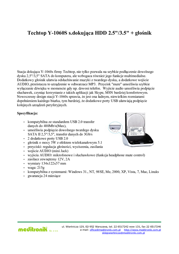 Unitek Y-1060S stacja dokująca USB 2.0 na dyski SATA/IDE