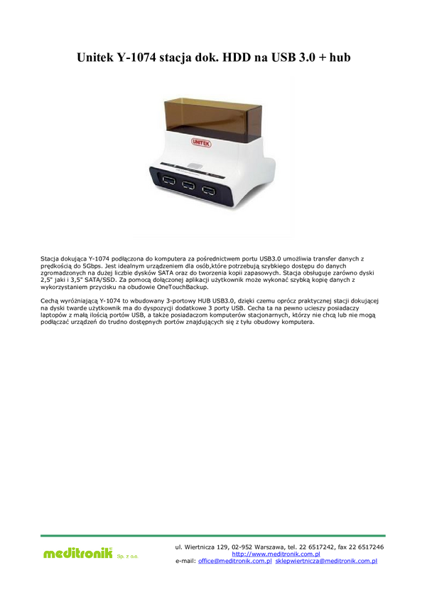 Unitek Y-1074 stacja dokująca HDD na USB 3.0 + hub