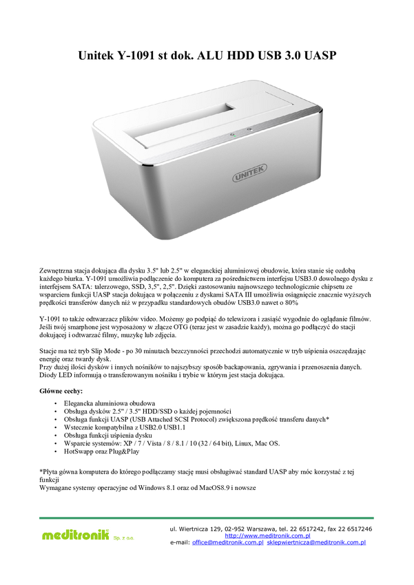 Unitek Y-1091 stacja dokująca alu HDD USB 3.0 UASP