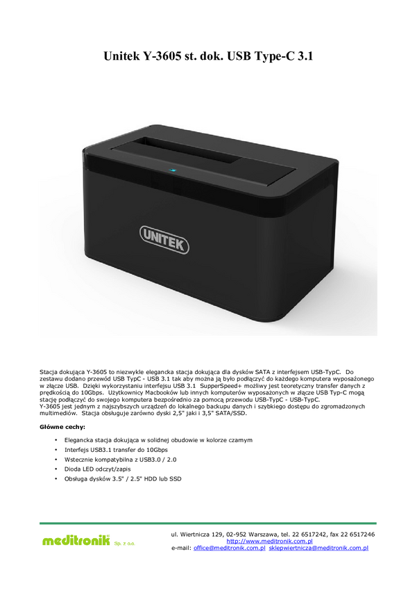 Unitek Y-3605 stacja dokująca USB Typ-C 3.1