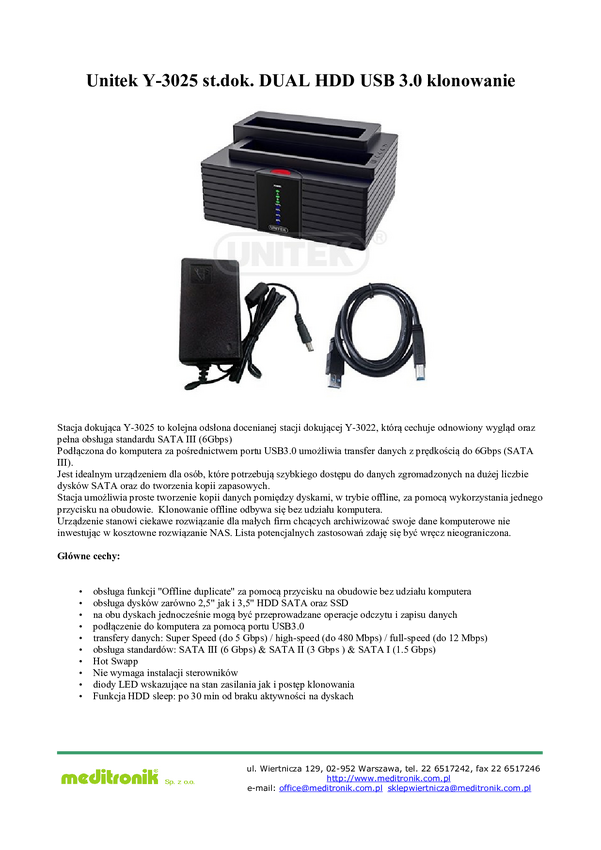 Unitek Y-3025 stacja dokująca USB 3.0 na dwa dyski SATA