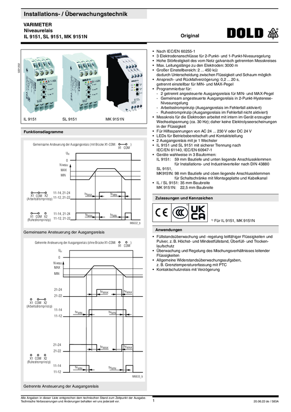 Przekaźnik poziomu Dold IL9151.12, 24 V/DC, 1 szt.