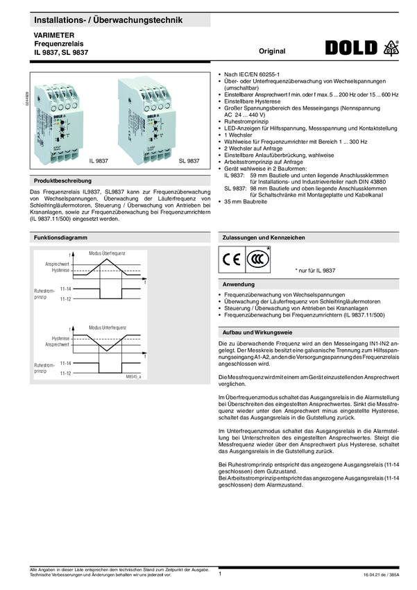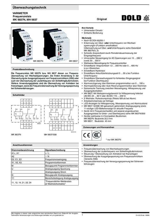 Przekaźnik częstotliwości Dold MK9837N.12/050