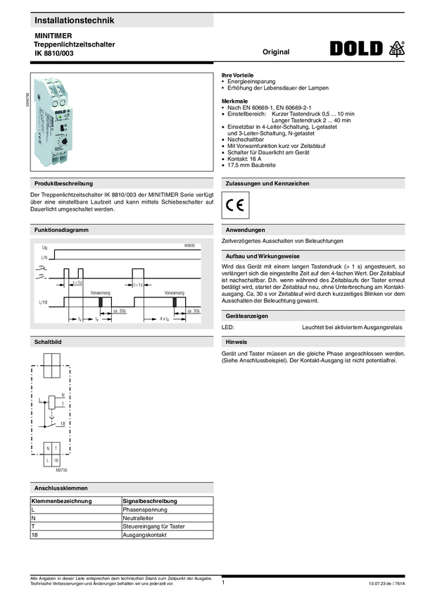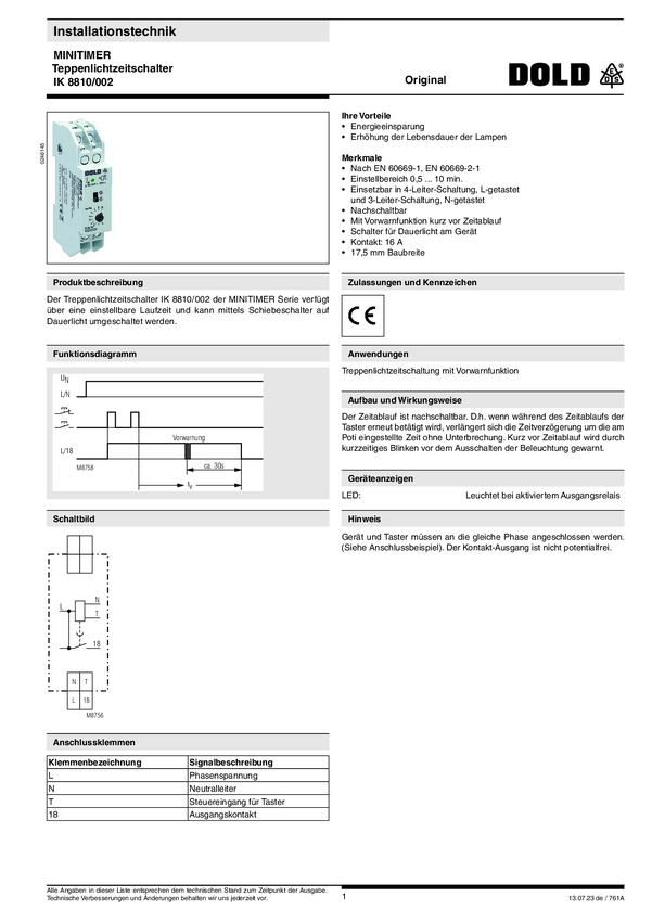Dold 0029837 Energooszczędny przełącznik IK8813.81, 1 - 20 min, 10 A, 1 szt.