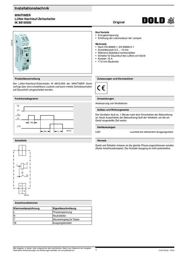 Dold 0057068 IK8810.41/005 Timer włączenia wentylatora 230 V/AC 1 szt. Zakres czasu: 0.5 - 10 min 1 NO