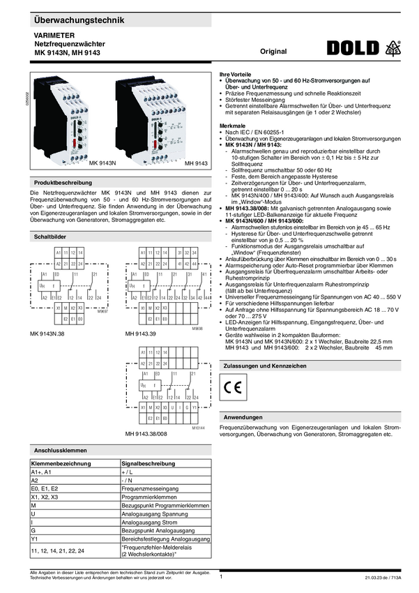 Monitor częstotliwości sieciowej Dold MK9143N.38