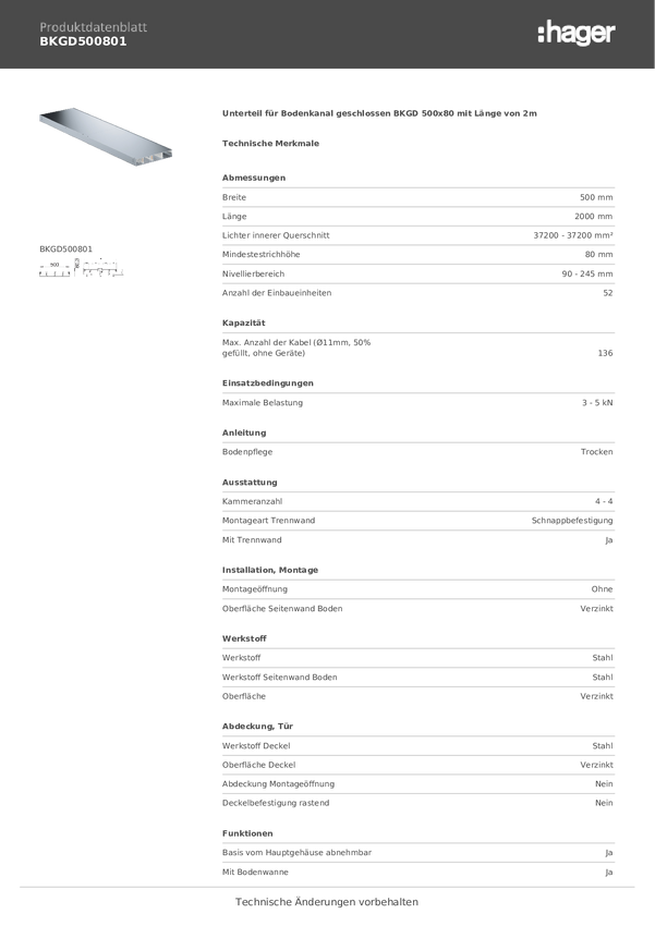 Część dolna Hager Tehalit BKGD400801, 2 m