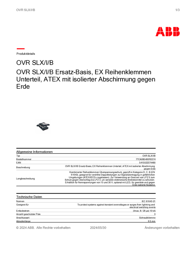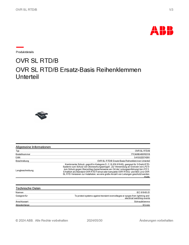 Dolna część bloku zacisków ABB 7TCA085400R0321 1 szt.