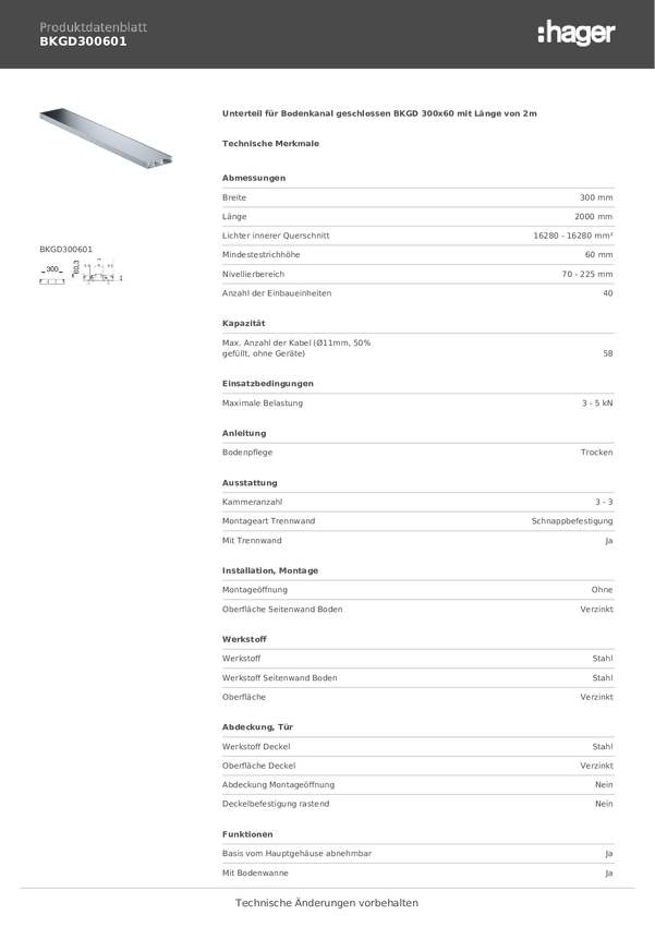 Część dolna Hager Tehalit BKGD300601, 2 m