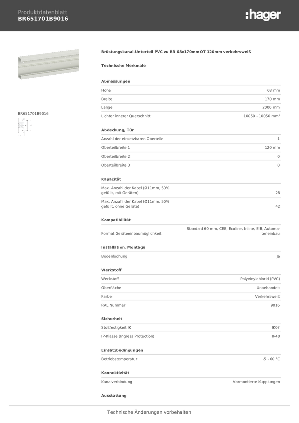 Część dolna Hager Tehalit BR651701B9016, 2 m