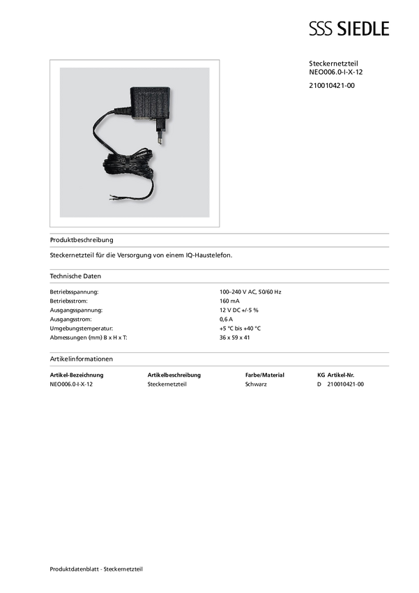 Siedle 210010421-00 Akcesorium do domofonu Zasilacz sieciowy