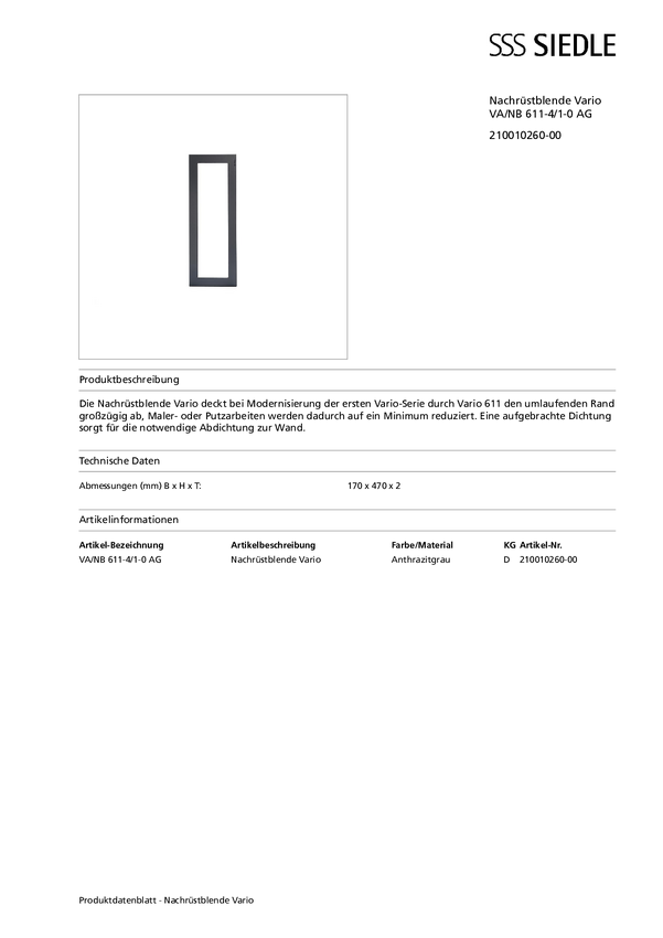 Siedle 210010260-00 Akcesorium do domofonu szary