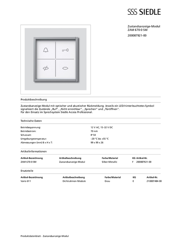 Siedle ZAM 670-0 SM Akcesorium do domofonu srebrny