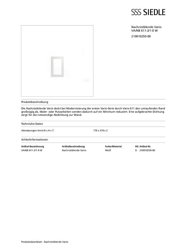 Siedle 210010250-00 Akcesorium do domofonu biały