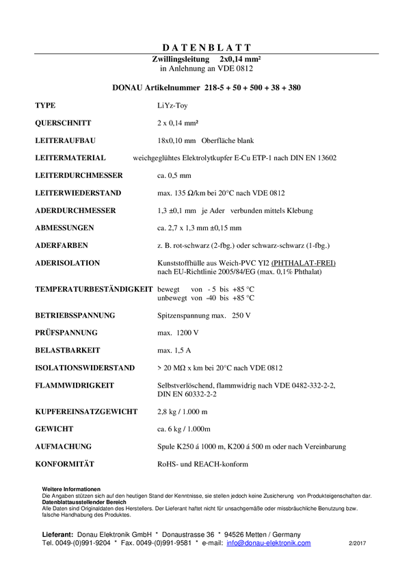 Donau Elektronik 218-38 Przewód linka 2 x 0.14 mm² brązowo-żółty 5 m