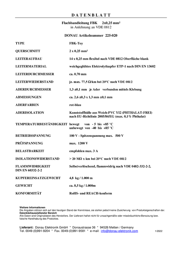 Donau Elektronik 225-010-25 Przewód linka 2 x 0.25 mm² czerwony/czarny 25 m