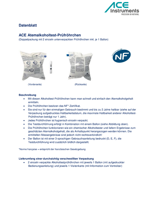 ACE Alkomat biały, niebieski, żółty 0.0 do 0.5 ‰ Z dopuszczeniem NFX