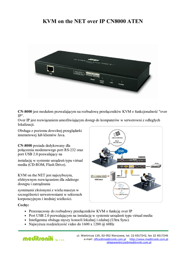 1-lokalny/zdalny dostęp Jednoportowy przełącznik VGA KVM over IP (1600 x 1200