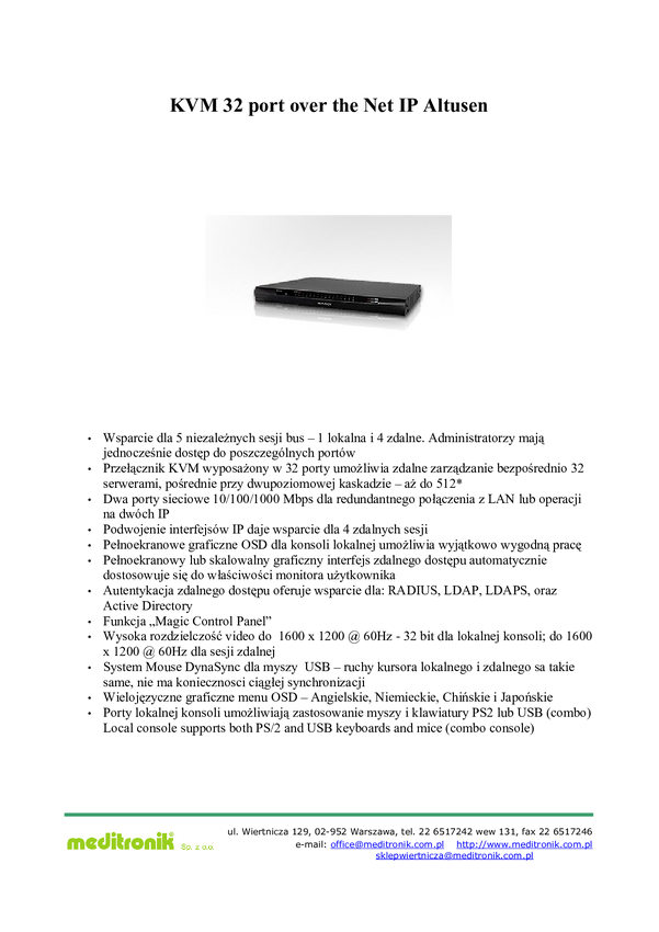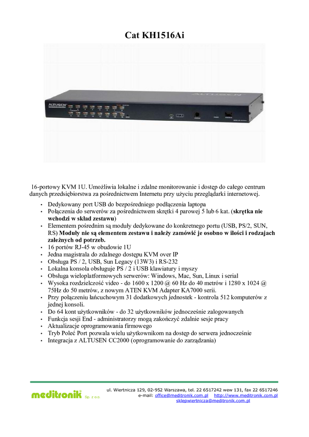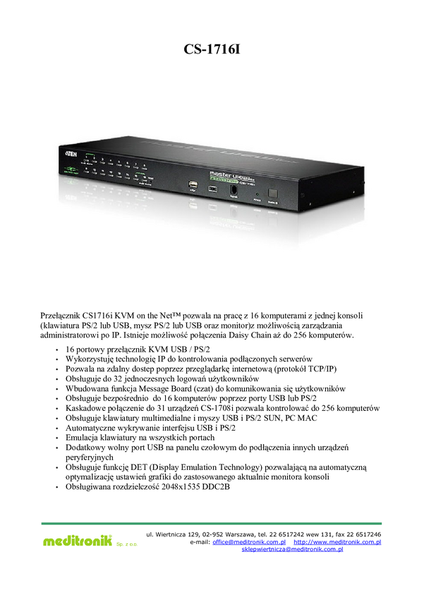 1-lokalny/zdalny dostęp 16-portowy przełącznik PS/2-USB VGA KVM over IP- ATEN