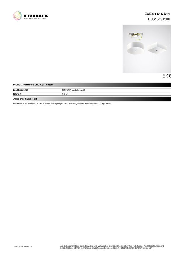Sufitowa puszka łączeniowa Trilux ZAE/01 Ans-Dose D11 6191500, 1 szt.