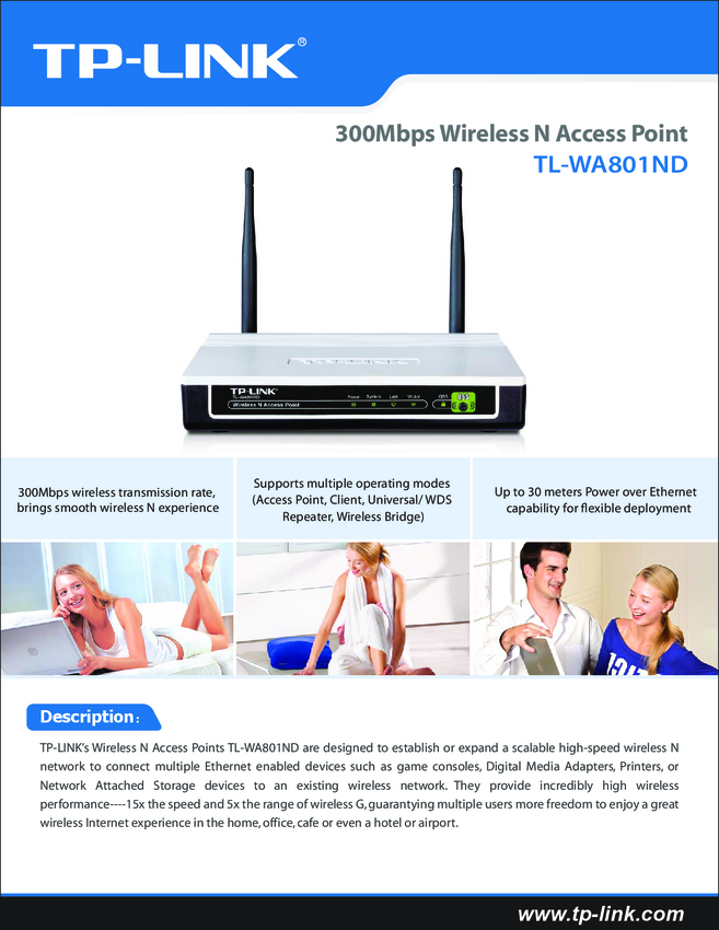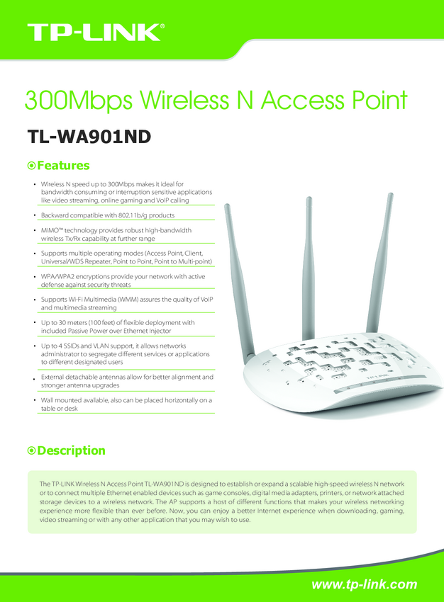TL-WA801ND Bezprzewodowy punkt dostępowy standard N, 300Mb/s