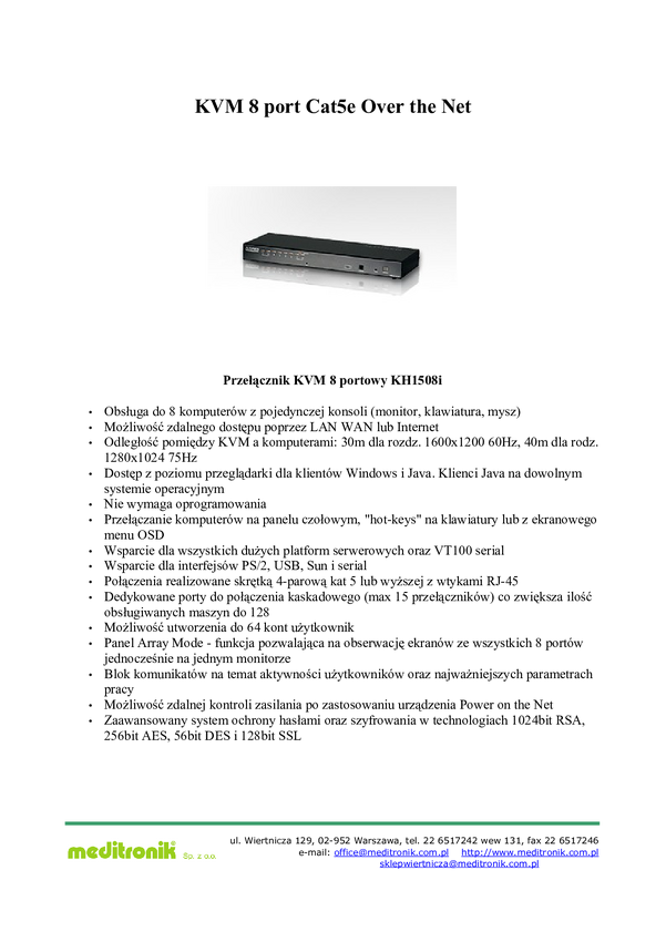 1-lokalny/zdalny dostęp 8-portowy przełącznik Cat 5 KVM over IP z portem poł