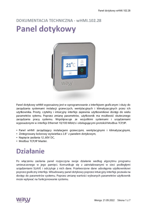 , z rezystancyjnym panelem dotykowym, 1024x768 (4:3), jasność 400 cd/m2, VGA, 12 VDC, temp. pracy 0°C÷50°C,