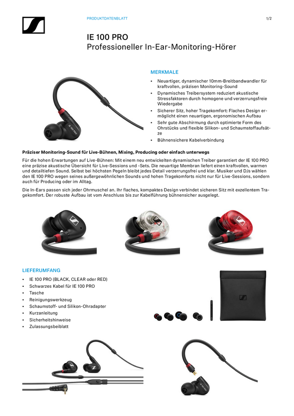 Sennheiser IE 100 PRO CLEAR Słuchawki douszne przewód przeźroczysty