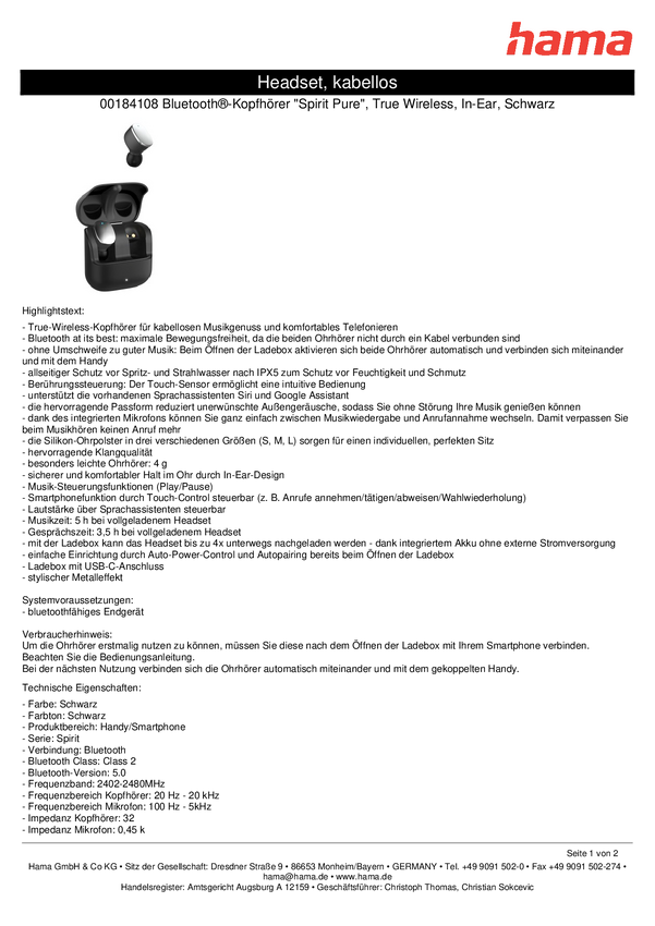 Słuchawki douszne Hama 00184108 stereo czarny