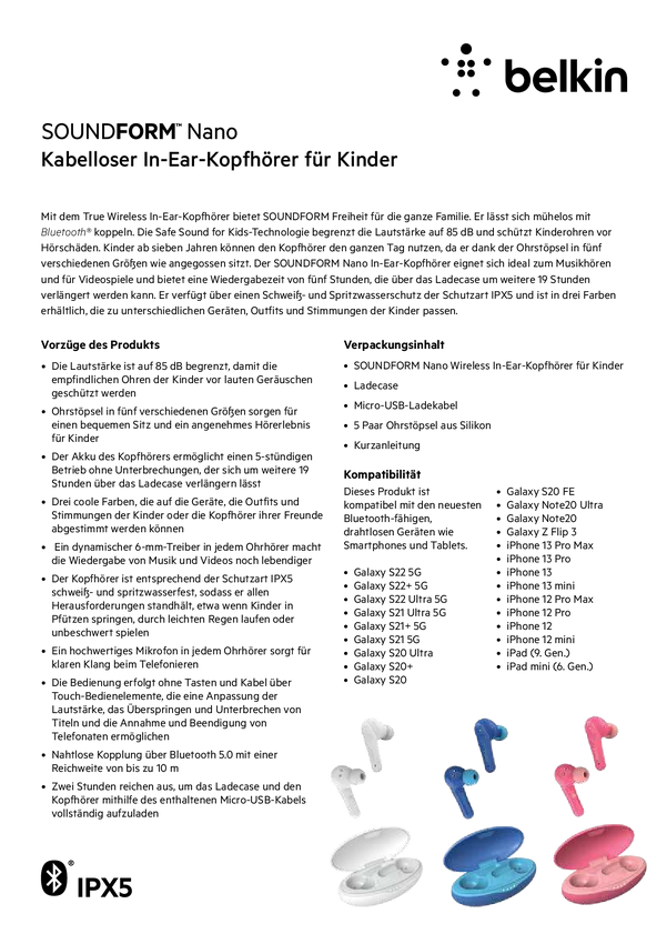 Słuchawki douszne Belkin SoundForm Nano PAC003btPK różowy