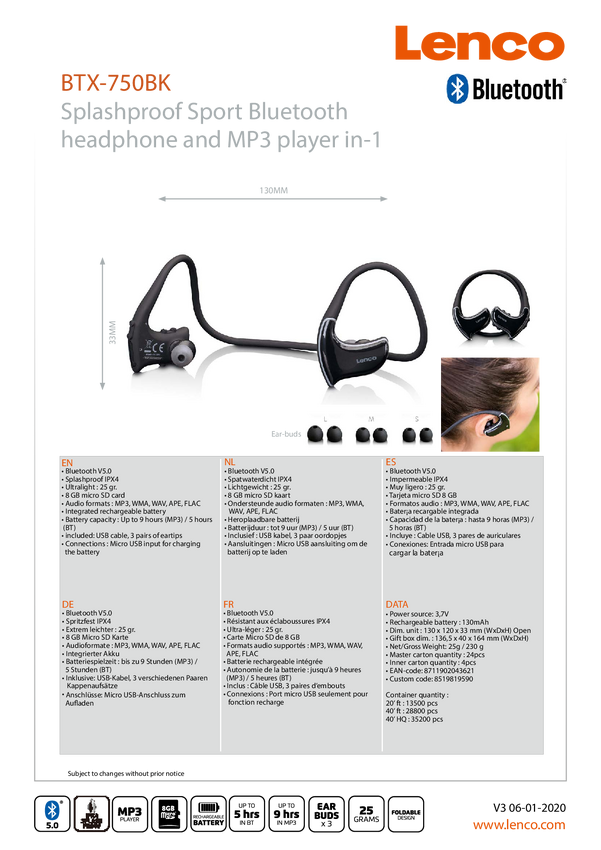 Słuchawki douszne Lenco BTX-750BK A004159 czarny