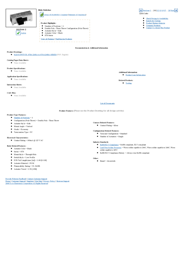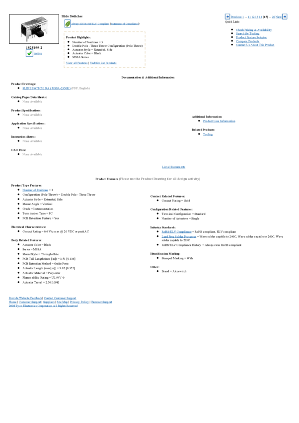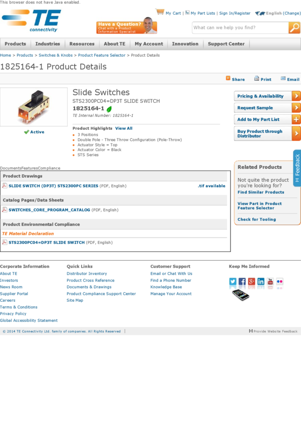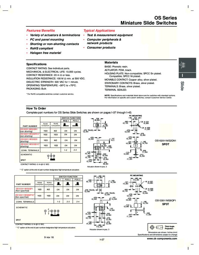 Switch Slide ON ON ON DP3T Side Slide 20VAC 20VDC 0.4VA PC Pins Bracket Mount/Through Hole Tray