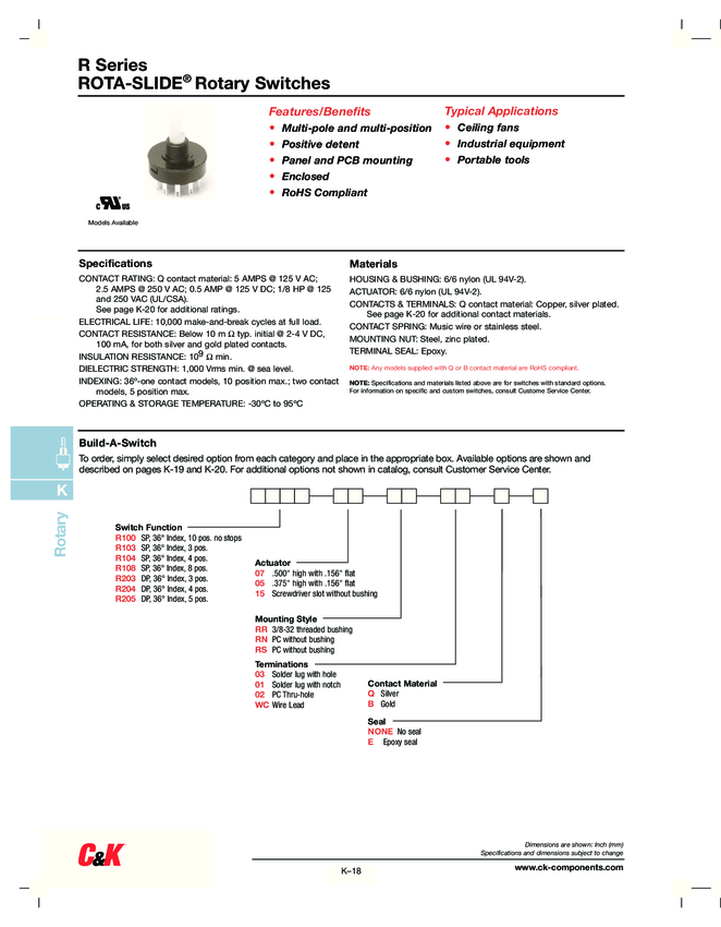 Switch Rotary DP3T 3 18-Tooth Serration Shaft PC Pins 0.1A 16VDC