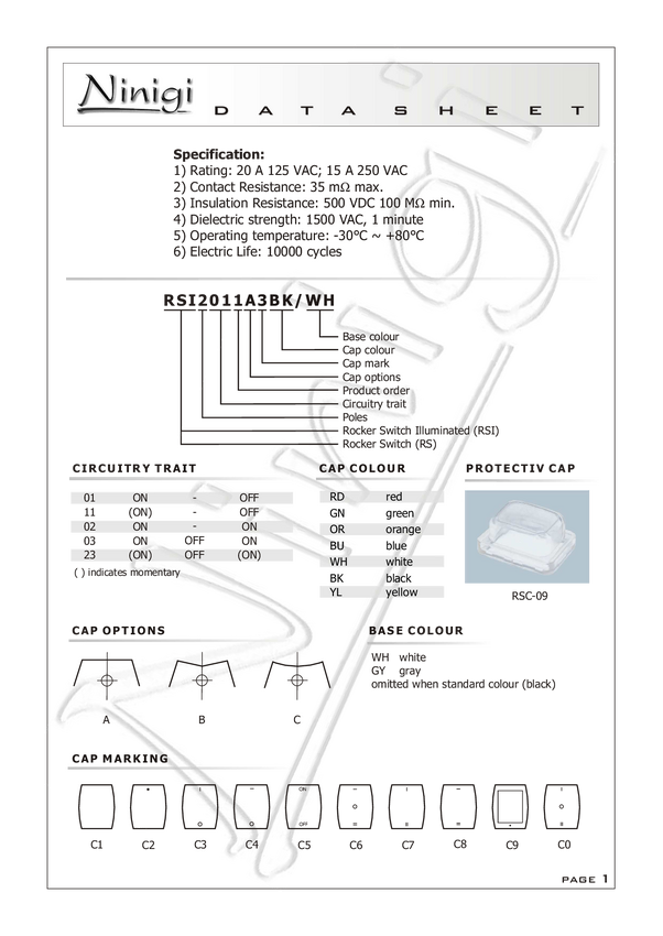 Przełącznik; ROCKER; klawiszowy; DP3T; ON-OFF-ON; 15A; 250V AC; czarny; 3 pozycje; RS2032C0BK; RoHS
