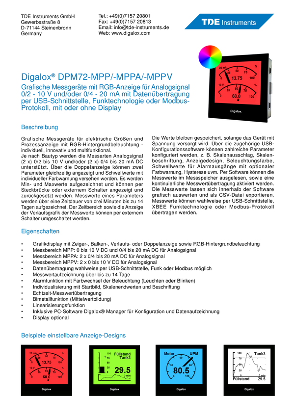 TDE Instruments DPM72-MPP-XBEE Urządzenie pomiarowe