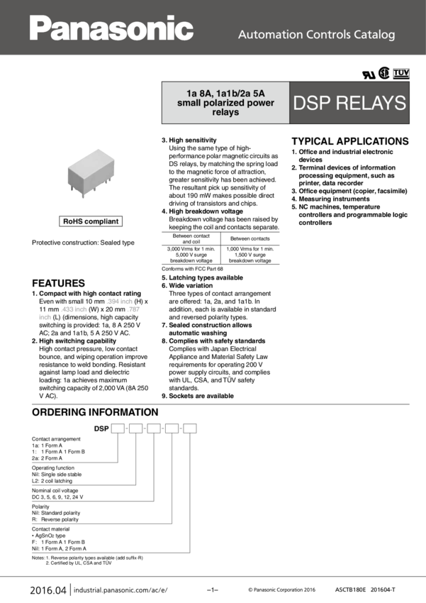 Electromechanical Relay DPST-NO/DPST-NC 0.35A 12VDC 1.1KOhm Through Hole