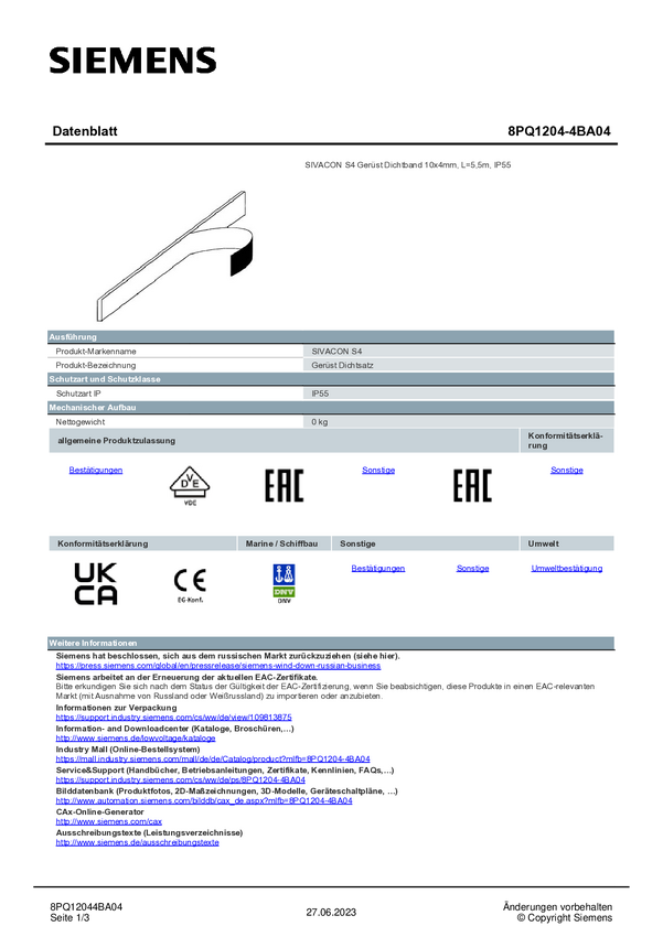 Prowadnica blokady drążka Siemens 8PQ1204-4BA04 1 szt.