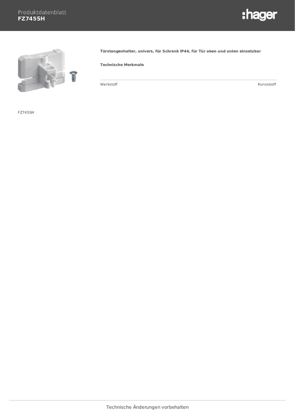 Hager FZ745SH Uchwyt drążka drzwi tworzywo sztuczne 1 szt.