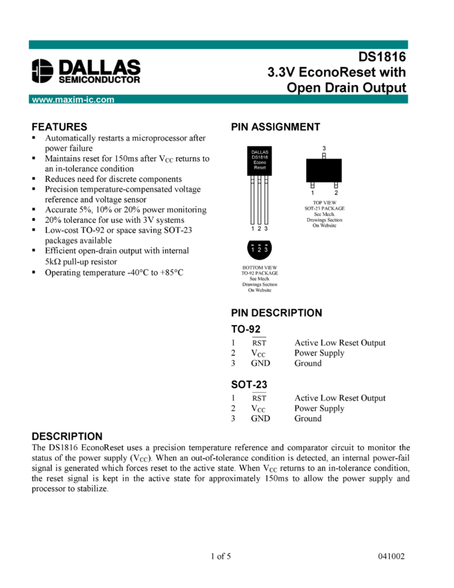 MAX971, MAX972, MAX973, MAX974, MAX981, MAX982, MAX983, MAX984 Ultra-Low-Power, Open-Drain, Single/Dual-Supply Comparators