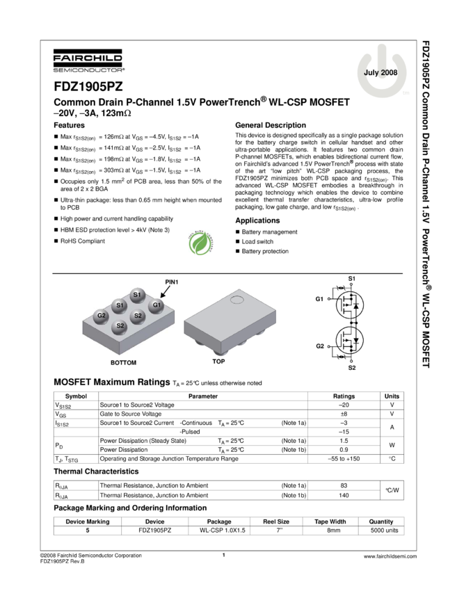 -20V Common Drain P-Channel 1.5V PowerTrench® WL-CSP MOSFET